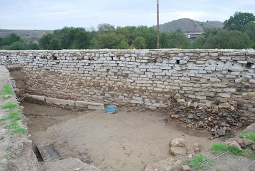 9 archaeologists, 9 students and around 70 workers were included in the excavation activities at the area east of the Theater, towards the two defensive walls. During the work of three months, a segment of 50 meters of the Eastern (Inner) Defensive Wall was uncovered. The Wall is very impressive and it is well preserved to the height of 4.5 meters. It has two phases of construction. Marble blocks and seats with inscribed names of Stobi’s eminent people, were taken out from the Theatre and built in the fortification wall during the first phase. On top of the wall, there are mortar beddings for lines of tiles which are missing. They were removed immediately after the destruction of the wall and probably reused in later buildings. It is most likely that the Inner Wall was built at the end of the 4th century or the beginning of the 5th century due to barbarian attacks and constant floods by the Crna River. The layers of flooding are well documented with the excavations on the outside.